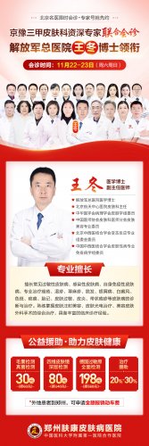 11月22日-23日(本周末),郑州肤康皮肤病医院为帮助河南疑难皮肤病患者早日实现健康无恙 解决“看病难、看病贵、看专家更贵”的问题特邀解放军总医院王冬博士莅临肤康进行联合会诊。